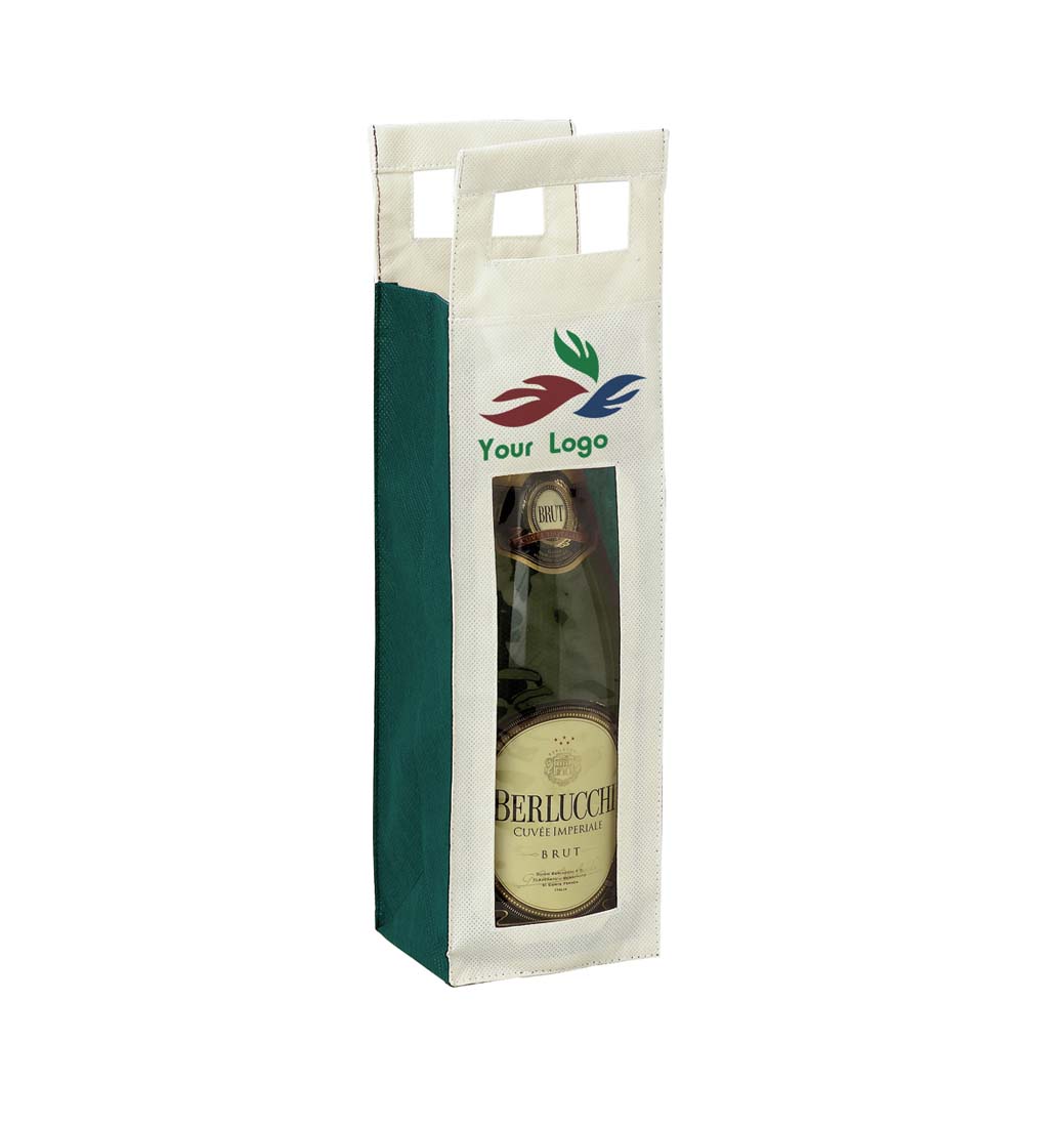 Borsa porta bottiglia in TNT con finestra trasparente, manici corti