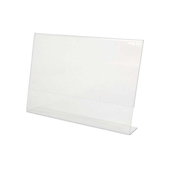 Espositore da tavolo in PS semplice ed economico per esporre uno stampato pubblicitario, menù o foto.