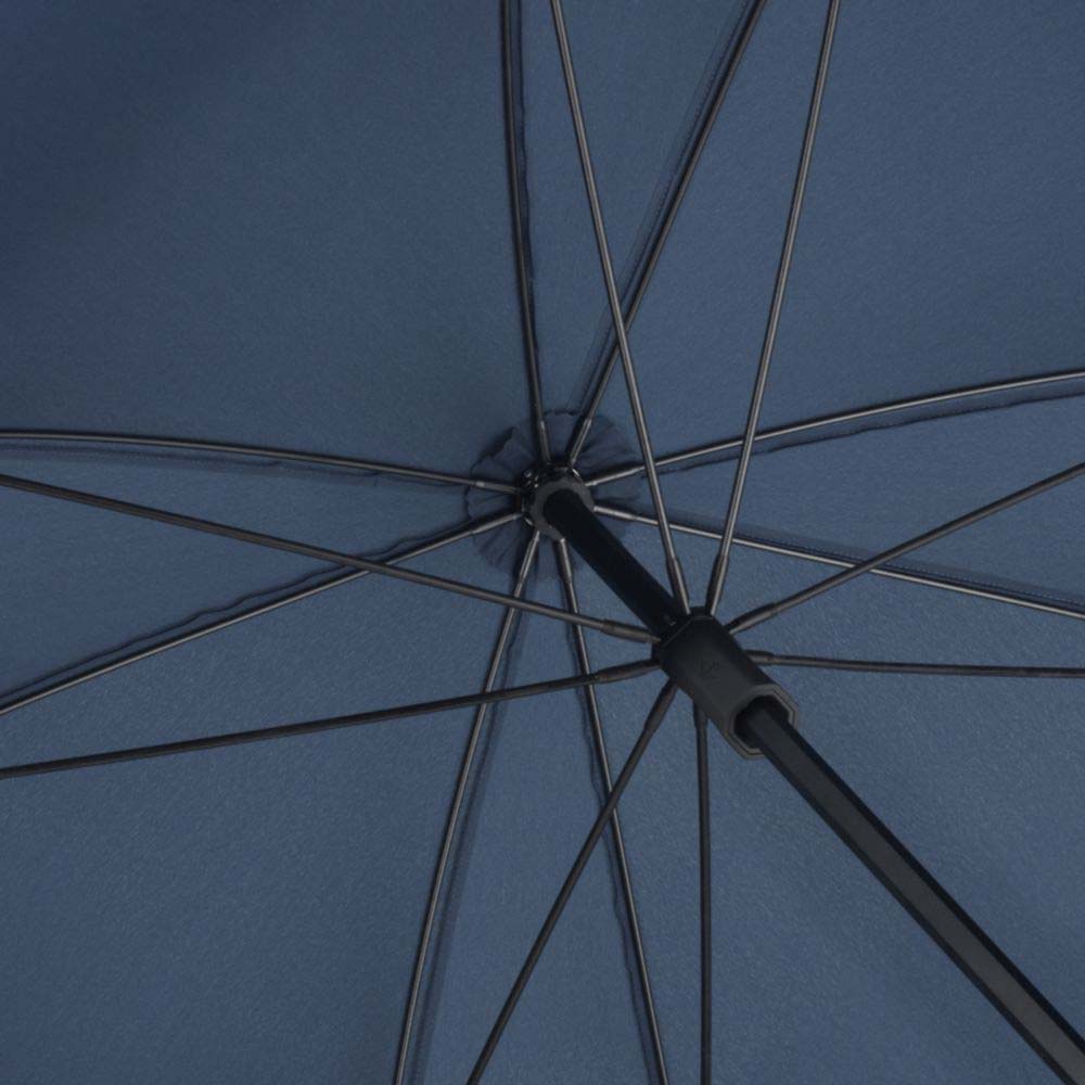 Ombrello in 100% poliestere, manico: plastica, asta: alluminio. Ombrello Golf per due persone. bastone nero, punta in plastica, bacchette flessibili in fibra di vetro, manico nero soft-touch. Diametro 100 cm, lunghezza da chiuso: 90 cm, 8 pannelli.