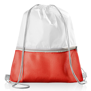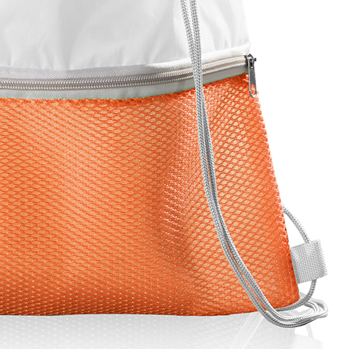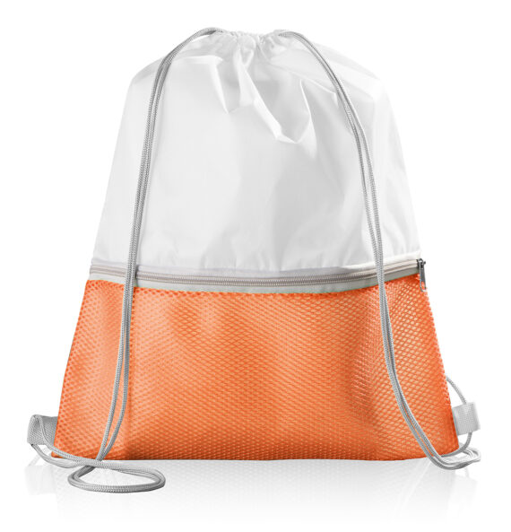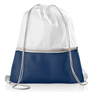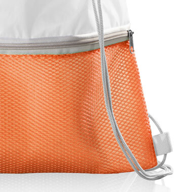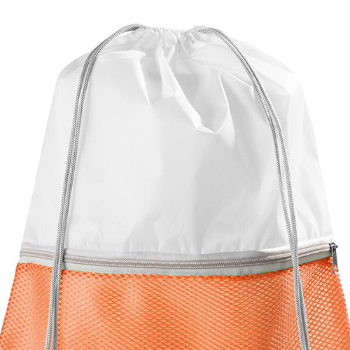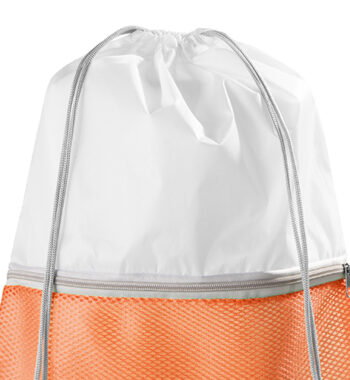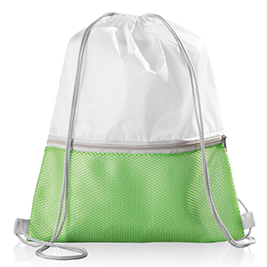 Zainetto con chiusura a strozzo e tasca frontale in mesh, chiusa mediante zip.