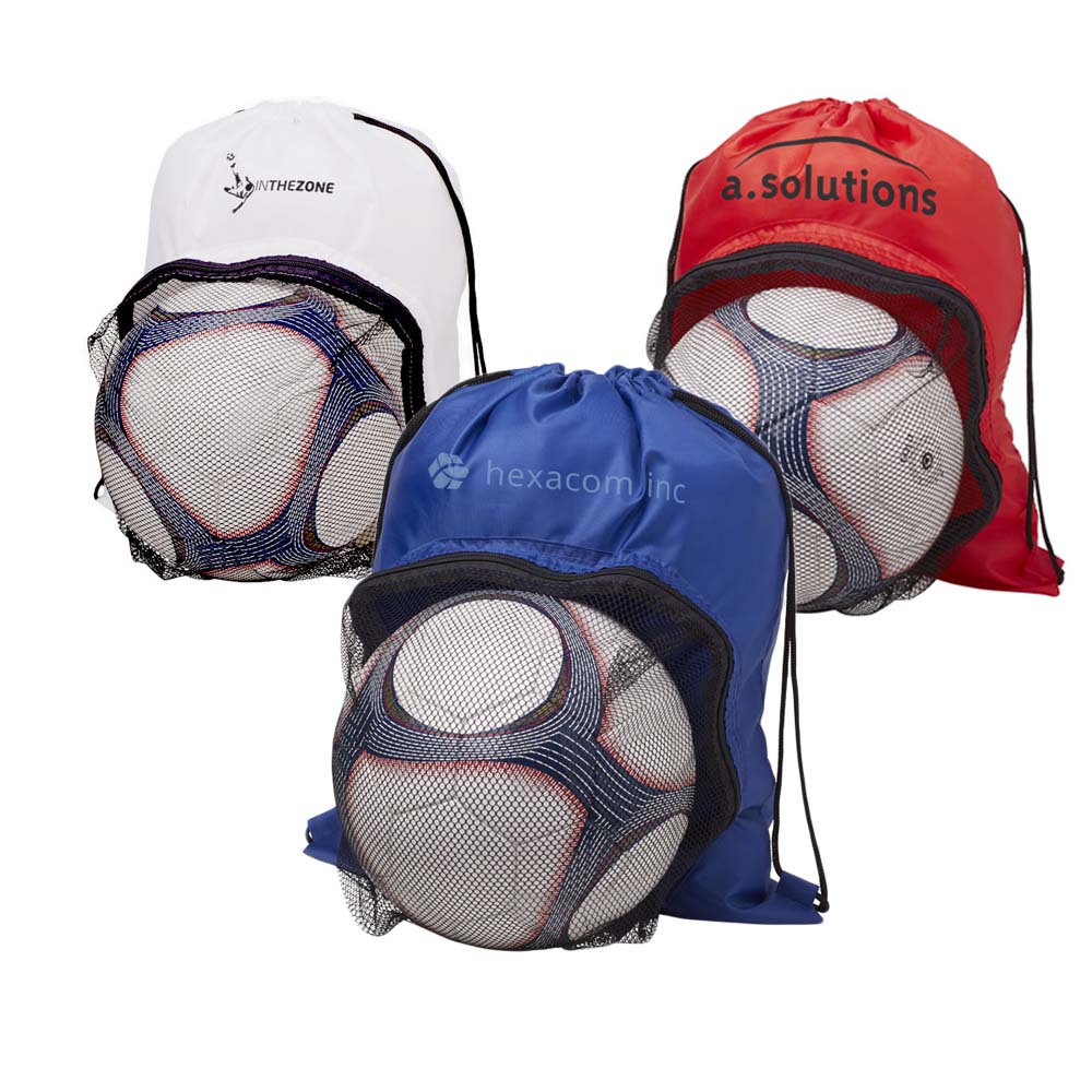 Sacca sportiva ampio scomparto principale con chiusura a coulisse e scomparto frontale per trasporto pallone