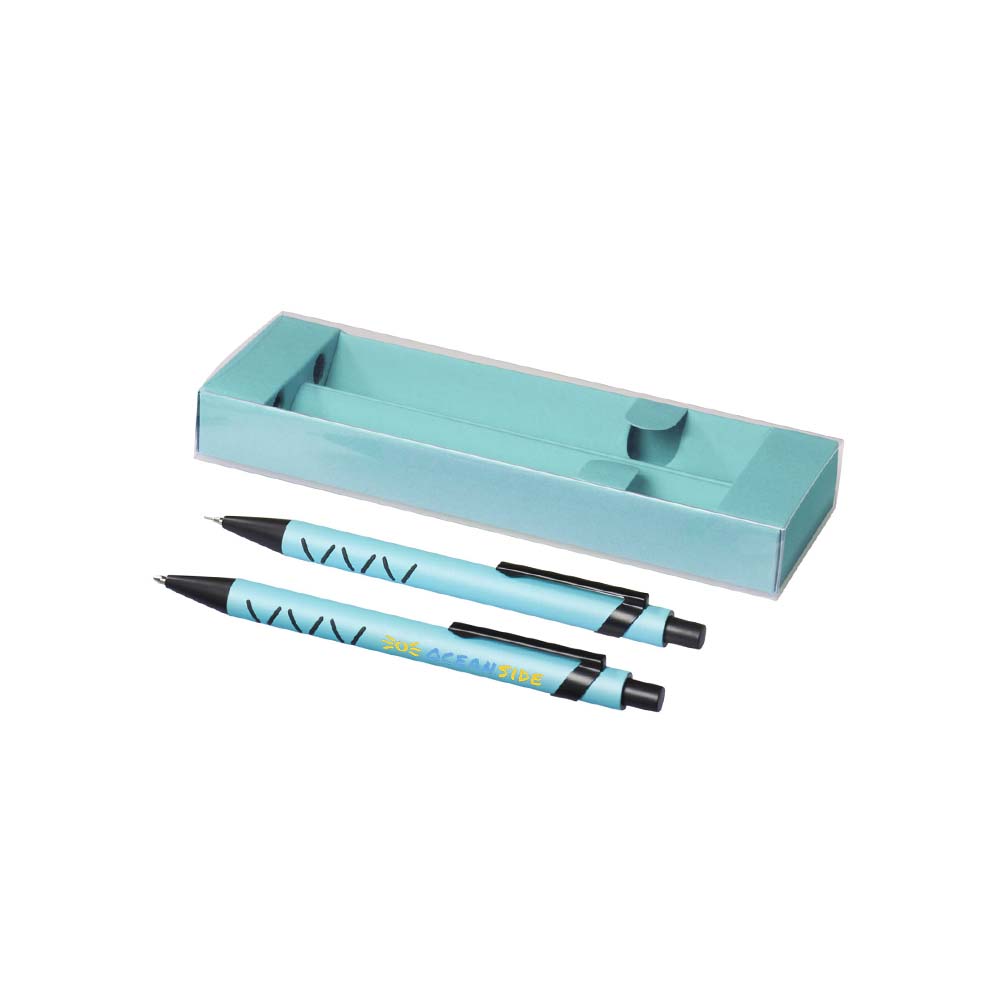 Penna a sfera e portamine con meccanismo a scatto in confezione regalo in cartoncino