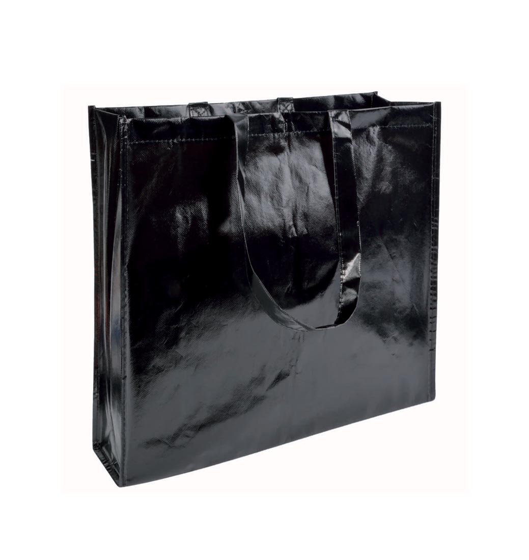 Shopper in TNT laminato, manici lunghi e soffietto