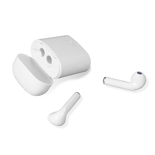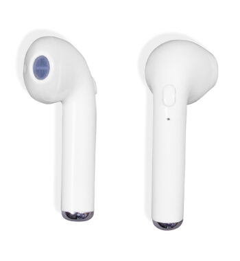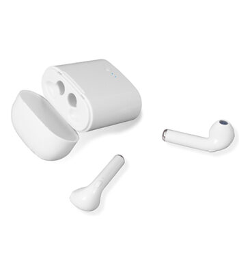 Auricolari wireless. Dotati di sistema di sicurezza che disabilita uno degli auricolari durante le conversazioni telefoniche per evitare la violazione del codice stradale. Indicatore LED di carica e accoppiamento ai dispositivi, pulsante multifunzionale per controllo di accensione e spegnimento, gestione delle chiamate e regolazione volume. Impedenza 32, risposta di frequenza 2.40 GHZ, sensibilità 42 dB. Gli auricolari possono essere ricaricati completamente 2 volte prima che l’astuccio debba essere collegato alla corrente. Autonomia in stand by: 60 ore / Autonomia in ascolto e conversazione: 2 ore.