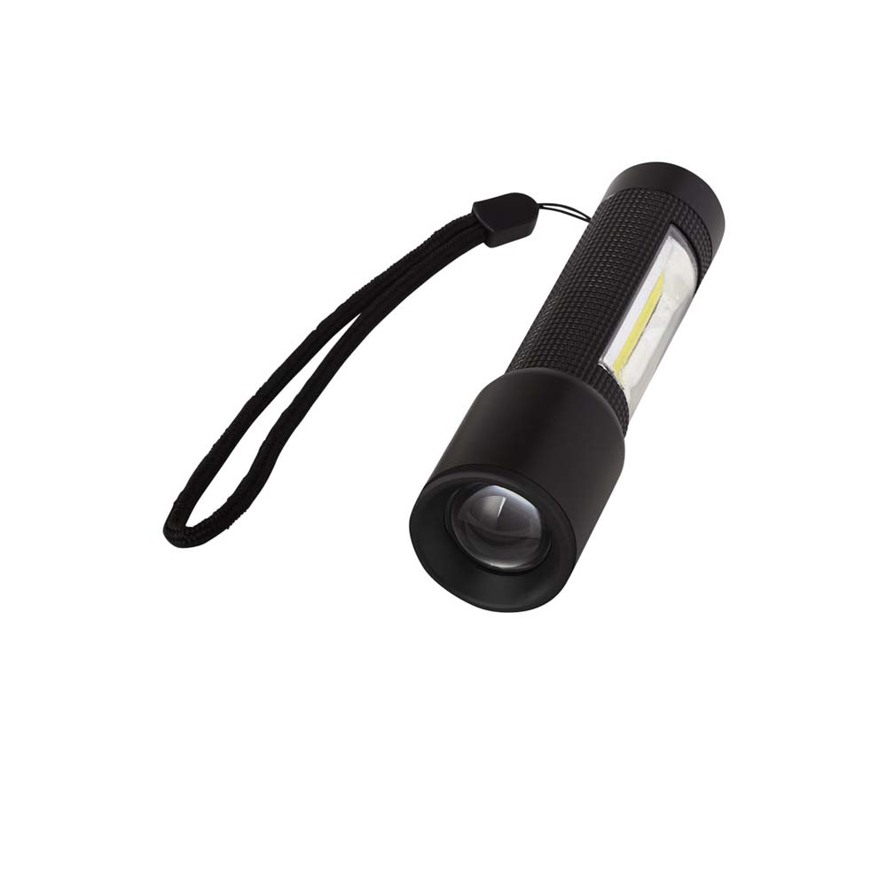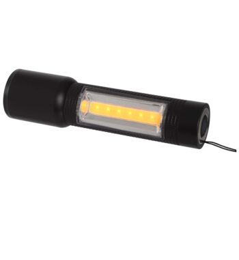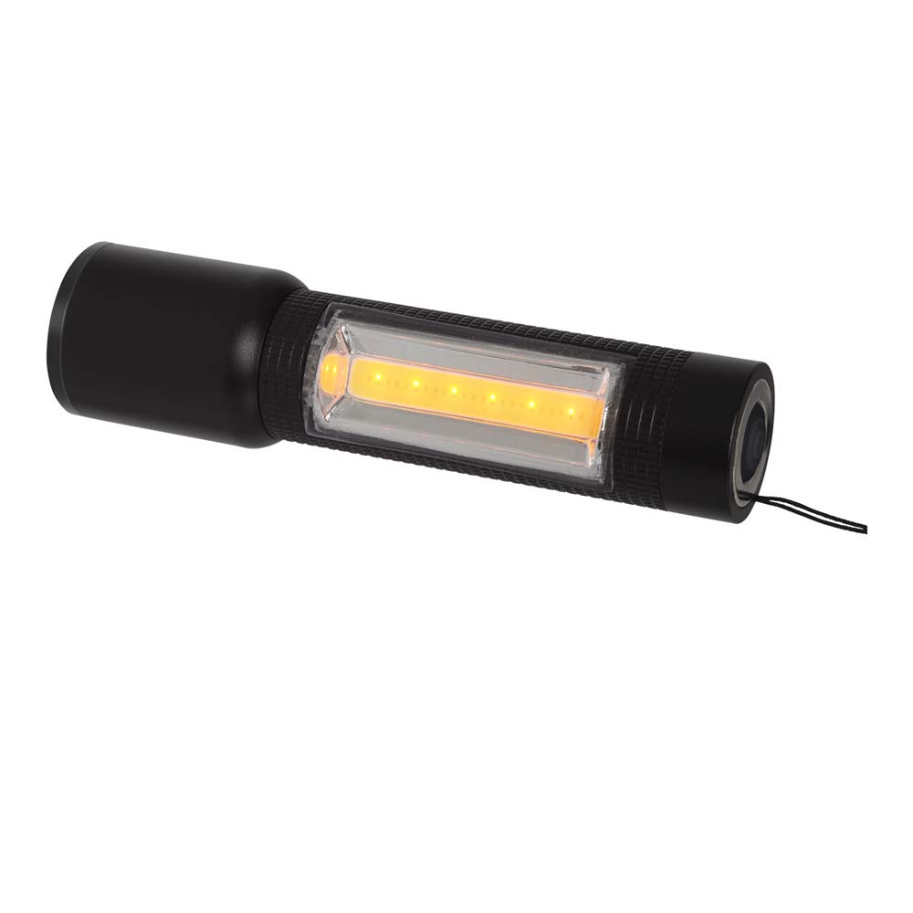 Torcia a LED multifunzione da 3W con luce laterale aggiuntiva da 3W. La torcia possiede 3 modalità: 100%, 50% e lampeggiante.