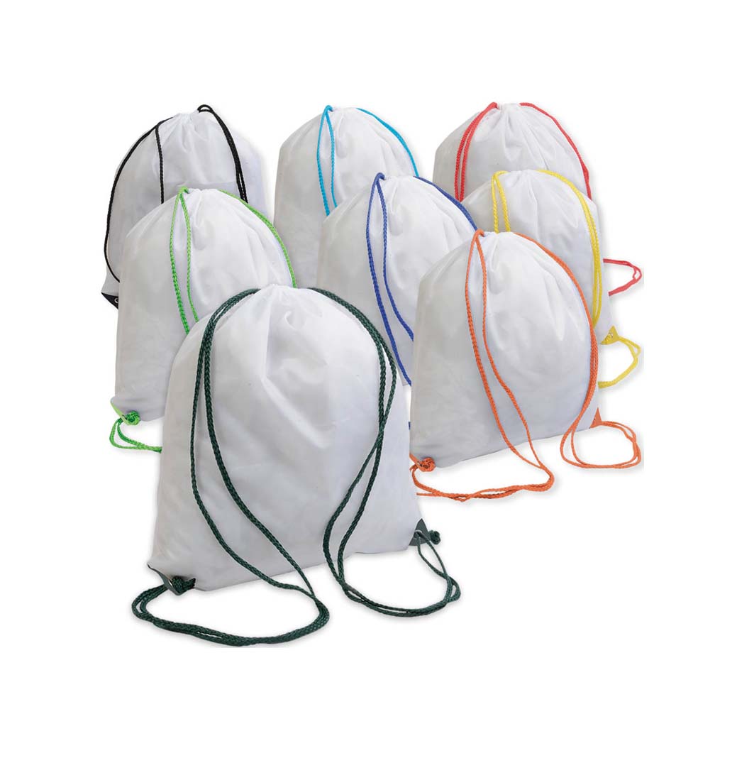 Zainetto bianco in poliestere, manici colorati con angoli rinforzati